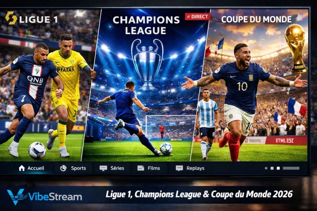 Vous souhaitez regarder le football en streaming IPTV sans vous ruiner ? Avec VibeStream, le streaming IPTV foot devient simple, rapide et accessible depuis n’importe quel écran. Ne ratez plus aucun match de Ligue 1, de Champions League ou de la Coupe du Monde 2026.