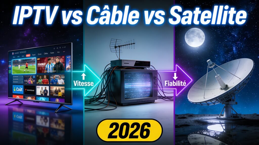 Vous hésitez entre l’IPTV, le câble ou le satellite pour regarder vos chaînes TV ? Voici un comparatif complet pour vous aider à choisir la meilleure solution en 2026.